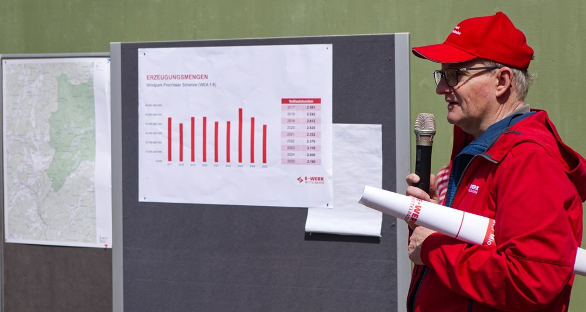 Katharina Tränkle vom Landratsamt Ortenaukreis, Eva Frese von der zuständigen Naturschutzbehörde und Walter Voss vom Amt für Waldwirtschaft gaben dabei praxisnahe Einblicke in die behördliche Perspektive. Ergänzend berichteten Martin Wenz, Finanzvorstand beim E-Werk Mittelbaden, und Anthea Götz, verantwortlich für Öffentlichkeitsarbeit beim E-Werk Mittelbaden, aus Sicht des Anlagenbetreibers über Bau, Betrieb und die langfristige Ausrichtung des Projekts. Auch ein besonderer Vorfall im Projektverlauf wurde thematisiert: Eine Anlage war zwischenzeitlich havariert, konnte jedoch erfolgreich instandgesetzt und fertiggestellt werden.