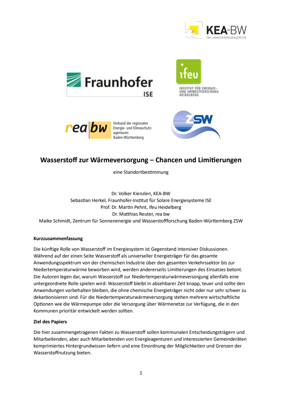 ![]() | Positionspapier: Wasserstoff zur Wärmeversorgung – Chancen und Limitierungen